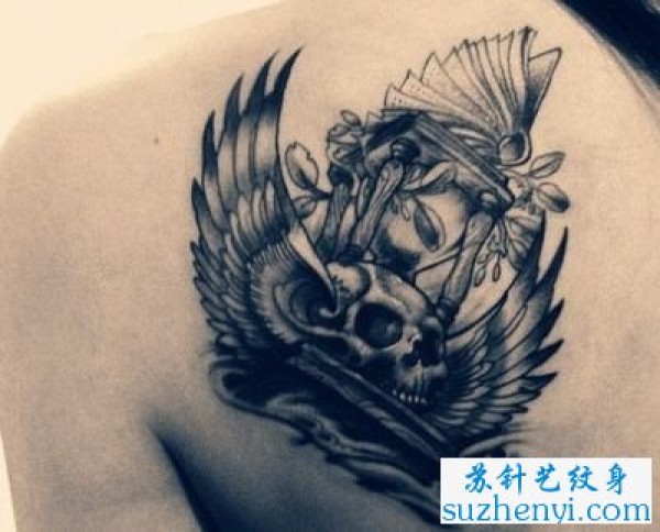 肩部骷髅翅膀纹身_骷髅纹身图案大全_纹身图吧