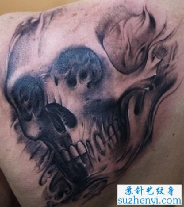 满背欧美写实骷髅纹身_骷髅纹身图案大全_纹身图吧