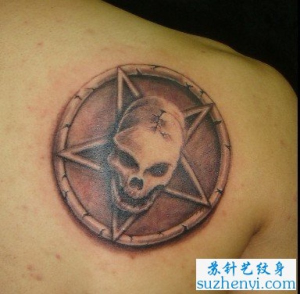 肩部五芒星骷髅纹身_骷髅纹身图案大全_纹身图吧
