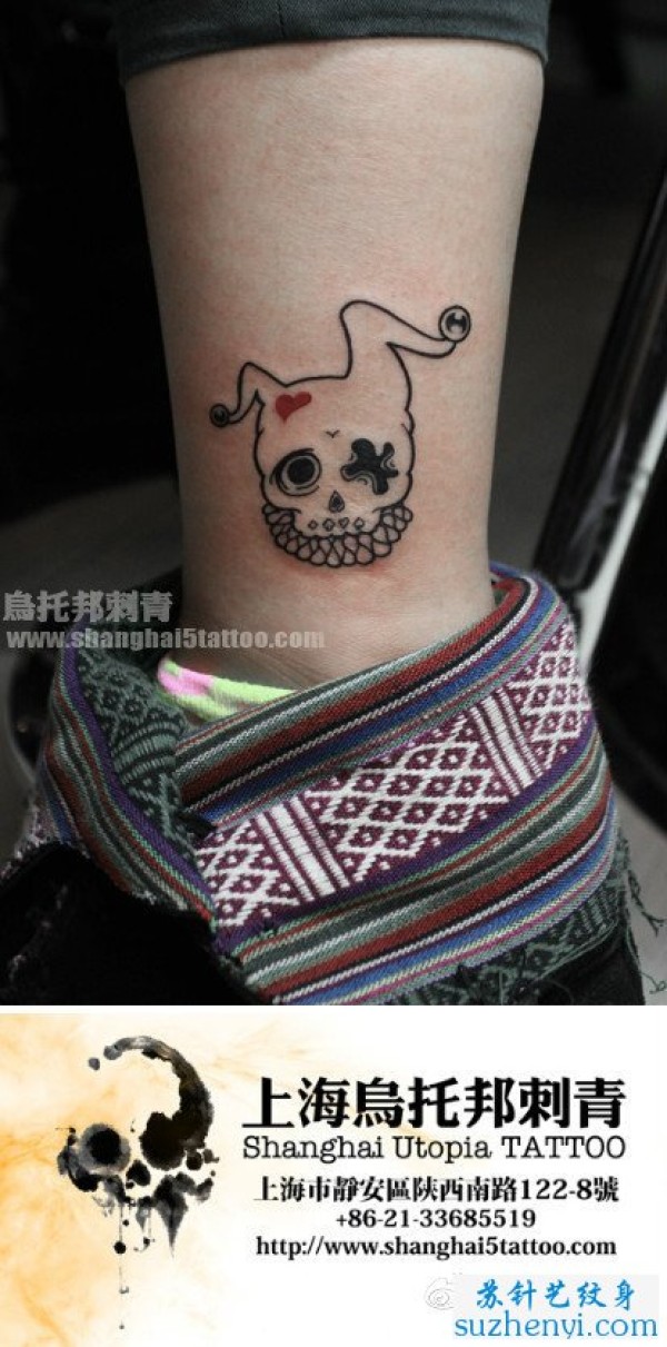 腿部的小丑骷髅纹身_骷髅纹身图案大全_纹身图吧