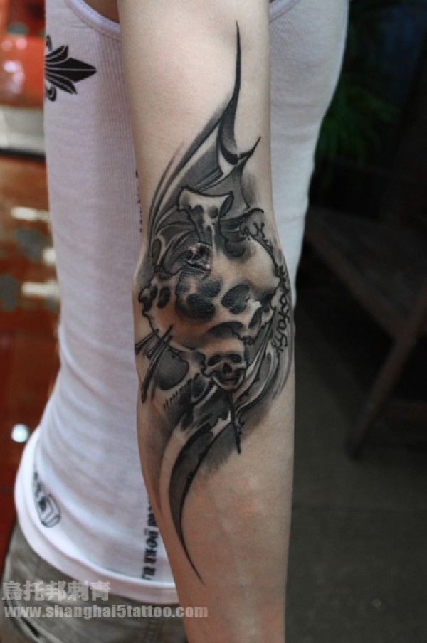 手肘骷髅_骷髅纹身图案大全_纹身图吧