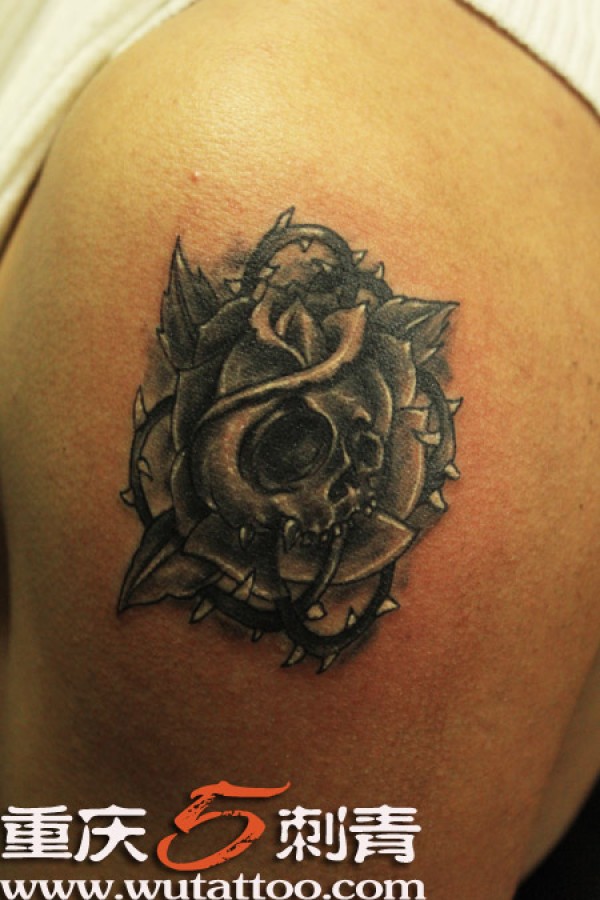 肩部五芒星骷髅纹身_骷髅纹身图案大全_纹身图吧