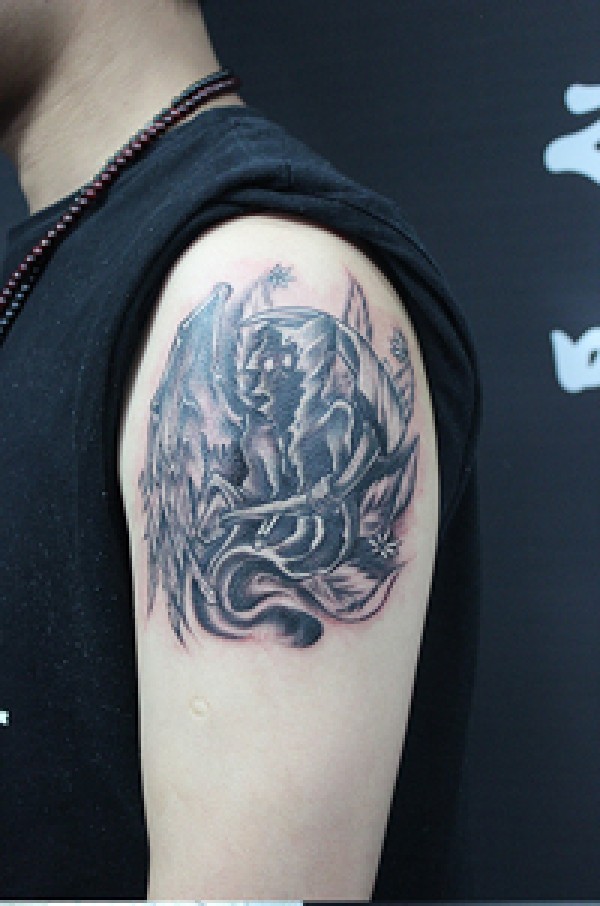 肩部五芒星骷髅纹身_骷髅纹身图案大全_纹身图吧