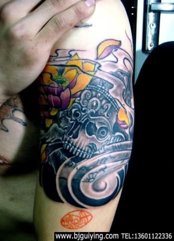 手臂骷髅菊花纹身_骷髅纹身图案大全_纹身图吧