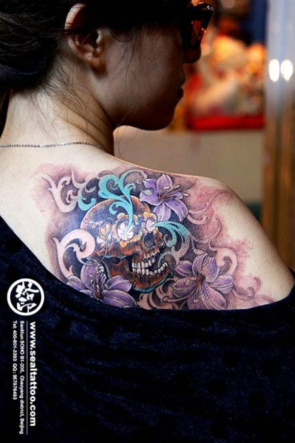 背部骷髅美女纹身_骷髅纹身图案大全_纹身图吧