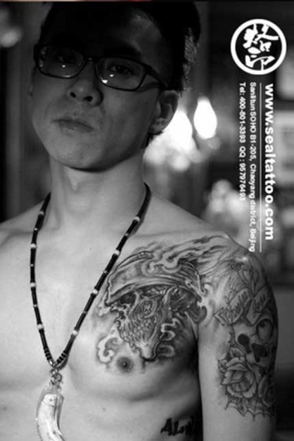 胸部骷髅翅膀纹身_骷髅纹身图案大全_纹身图吧