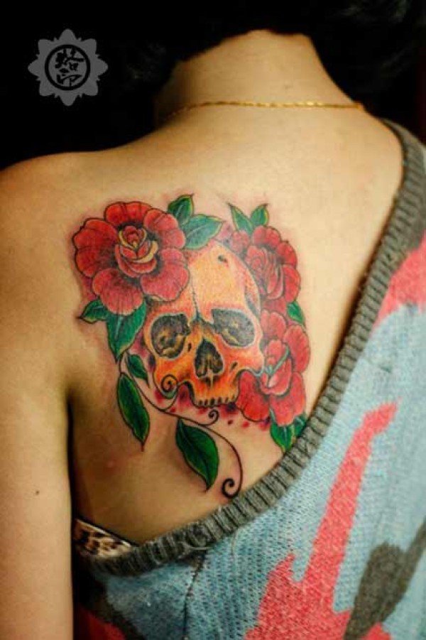 背部骷髅美女纹身_骷髅纹身图案大全_纹身图吧