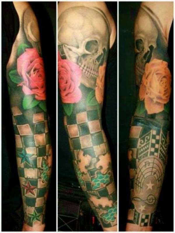 骷髅牡丹手臂_骷髅纹身图案大全_纹身图吧