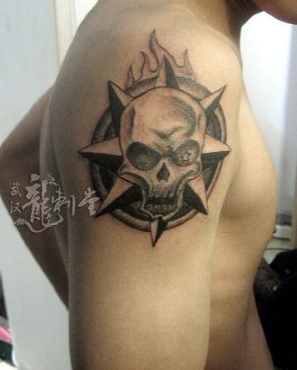 肩部五芒星骷髅纹身_骷髅纹身图案大全_纹身图吧