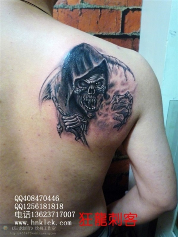 死神纹身黑色、彩色作品价格 多少钱 哪里可以纹_骷髅纹身图案大全_纹身图吧