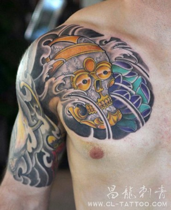 嘎巴拉半胛_男士大图_骷髅纹身图案大全_纹身图吧