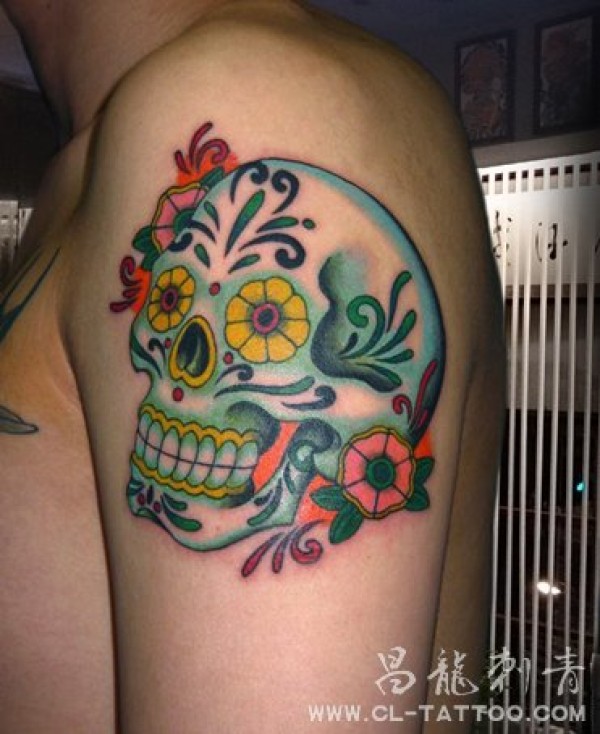 肩部五芒星骷髅纹身_骷髅纹身图案大全_纹身图吧