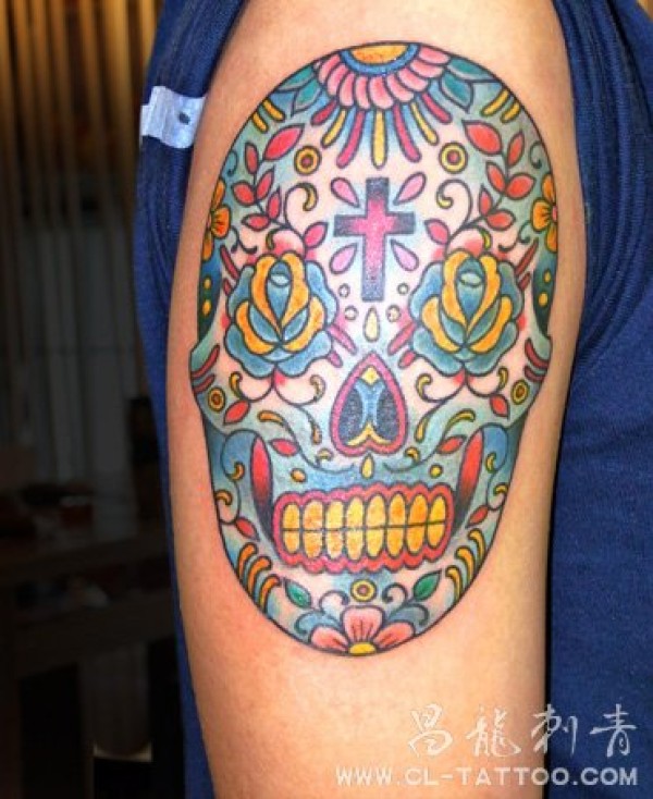 肩部五芒星骷髅纹身_骷髅纹身图案大全_纹身图吧