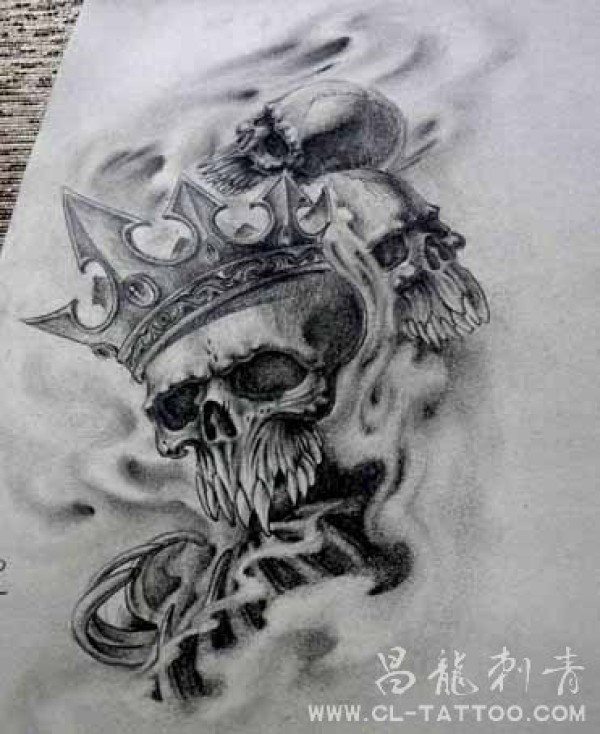 背部戴皇冠的骷髅纹身_骷髅纹身图案大全_纹身图吧