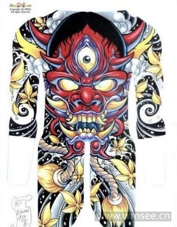 日本嘎巴拉全胛刺青手稿图片_骷髅纹身图案大全_纹身图吧