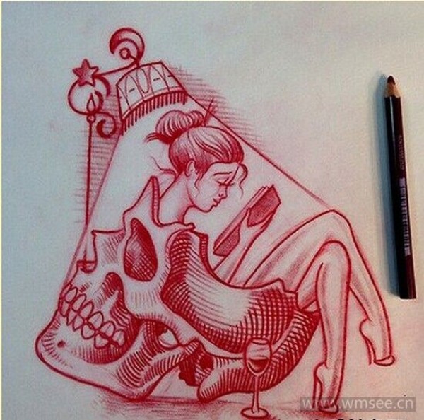 一款漂亮女郎骷髅纹身图案_骷髅纹身图案大全_纹身图吧