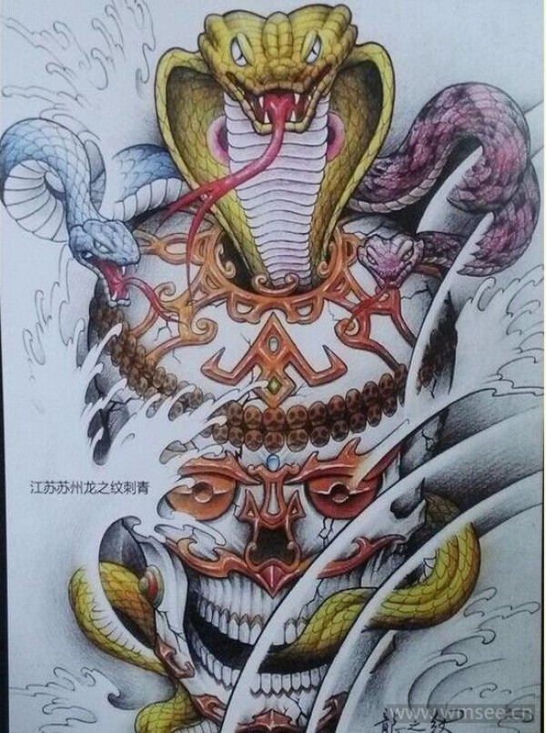 传统嘎巴拉蛇纹身图案_骷髅纹身图案大全_纹身图吧