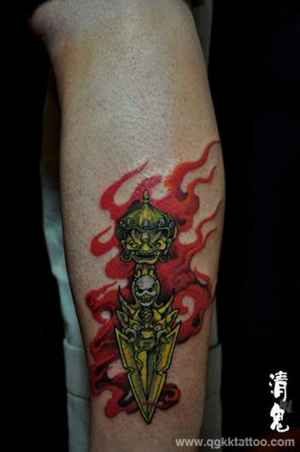 嘎巴拉与火焰火纹身图案大全_骷髅纹身图案大全_纹身图吧