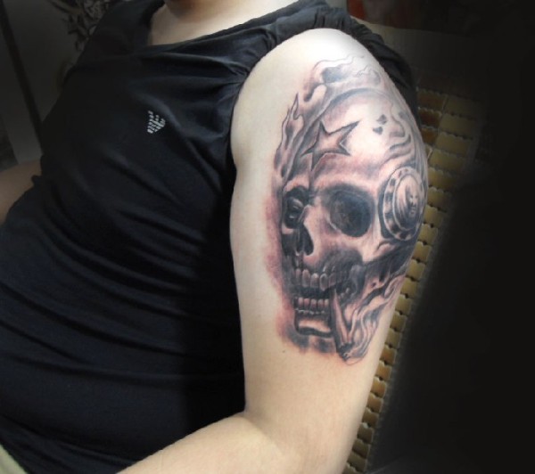 肩部五芒星骷髅纹身_骷髅纹身图案大全_纹身图吧