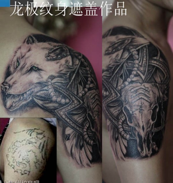 狼头骷髅遮盖_骷髅纹身图案大全_纹身图吧