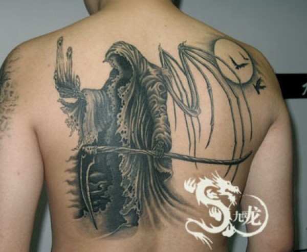 满背欧美写实骷髅纹身_骷髅纹身图案大全_纹身图吧