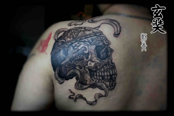 肩部五芒星骷髅纹身_骷髅纹身图案大全_纹身图吧