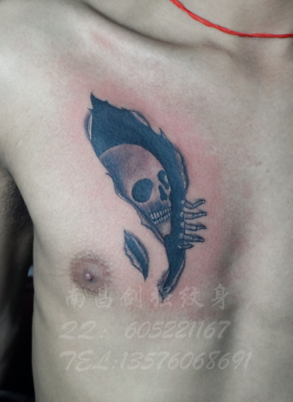 胸部骷髅翅膀纹身_骷髅纹身图案大全_纹身图吧