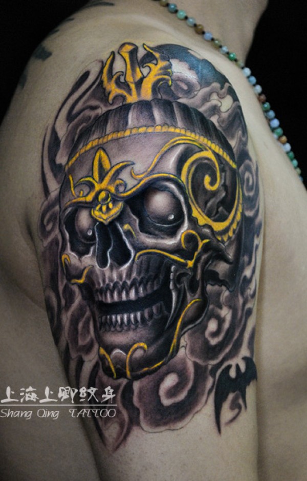 肩部五芒星骷髅纹身_骷髅纹身图案大全_纹身图吧