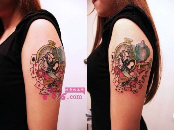 另类创意怀表茶壶手臂纹身_另类纹身图案大全_纹身图吧