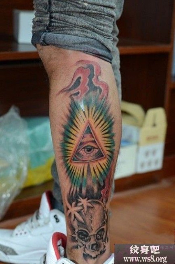 小腿另类图腾骷髅刺青图案_另类纹身图案大全_纹身图吧