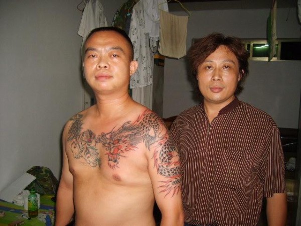 男人胸膛龙虎共斗纹身图片_龙纹身图案大全_纹身图吧