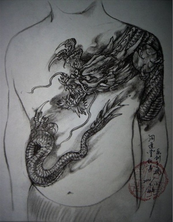 假想体上的纹身龙体素材_龙纹身图案大全_纹身图吧