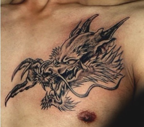胸部一龙头_龙纹身图案大全_纹身图吧