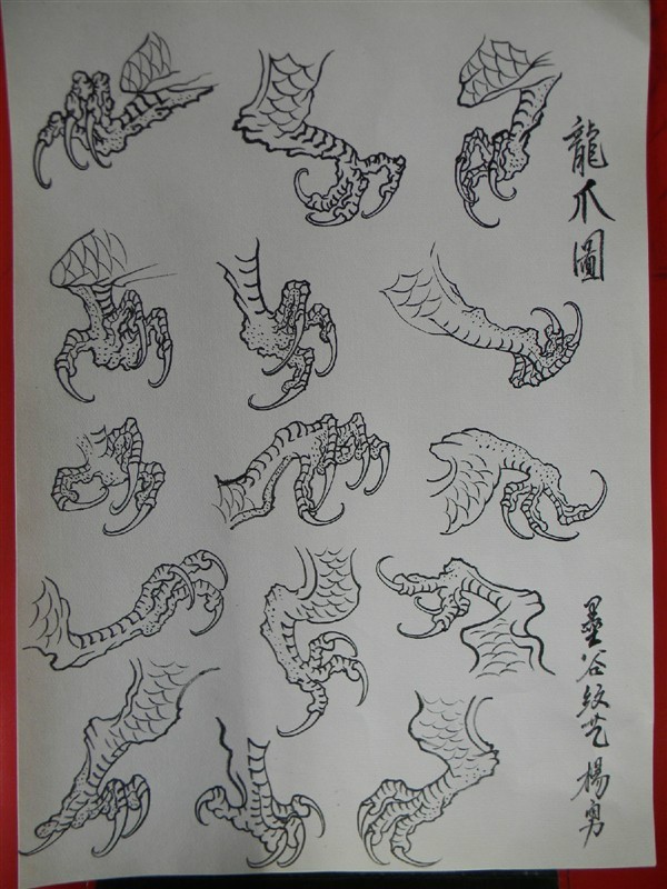 龙纹身手稿_一组老传统黑灰龙手稿纹身图案