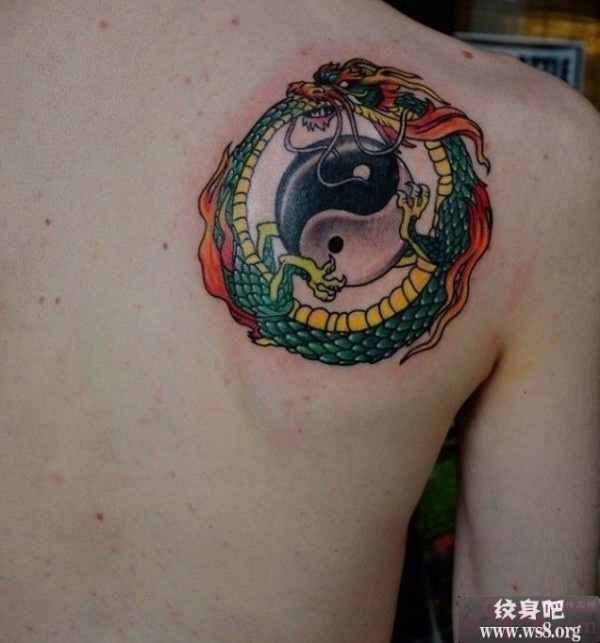 中国龙太极图背部图案_龙纹身图案大全_纹身图吧