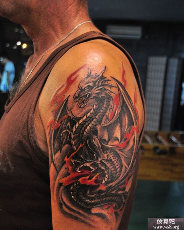 男士霸气手臂飞龙纹身图案_龙纹身图案大全_纹身图吧