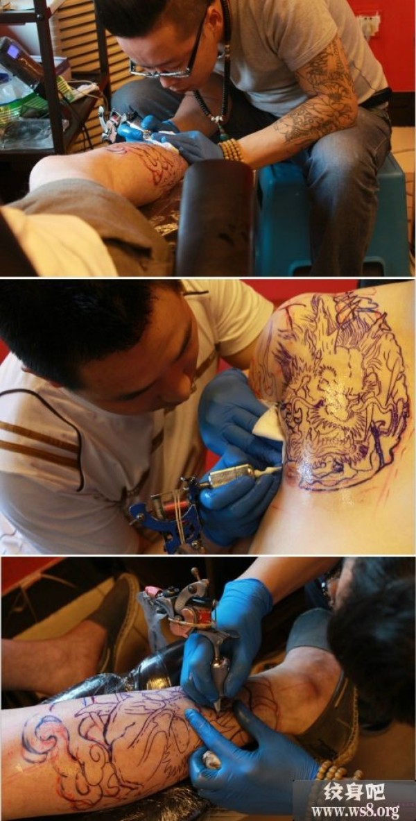 腿部般若与传统龙半胛刺青现场图案_龙纹身图案大全_纹身图吧