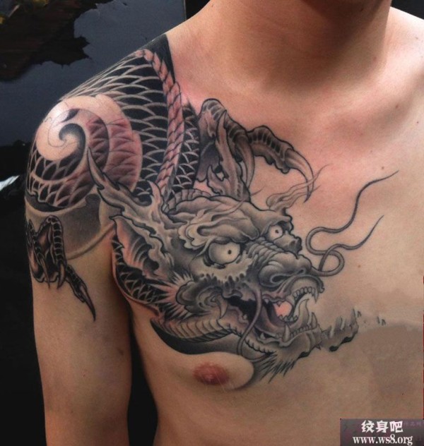 霸气披肩龙纹身图图案_龙纹身图案大全_纹身图吧