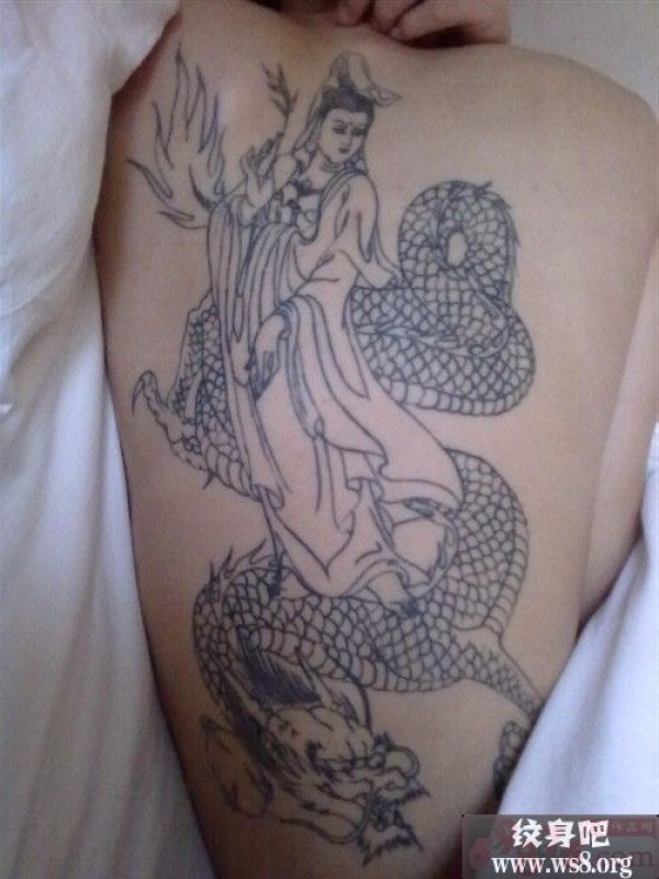乘龙的观音菩萨刺青图案_龙纹身图案大全_纹身图吧