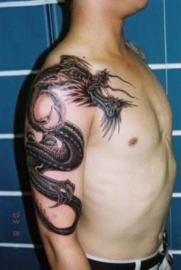 披肩龙刺青图案_龙纹身图案大全_纹身图吧