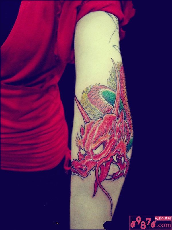 霸气美女手臂龙图腾纹身_龙纹身图案大全_纹身图吧