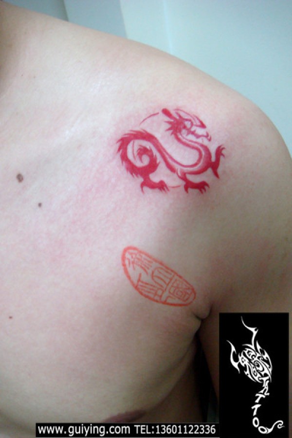 红色图腾小龙_龙纹身图案大全_纹身图吧
