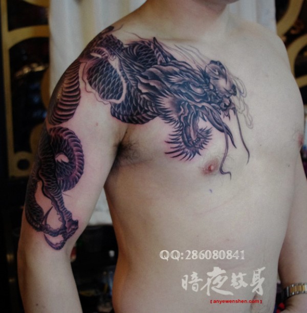 过肩龙纹身,暗夜刺青,上海纹身_龙纹身图案大全_纹身图吧