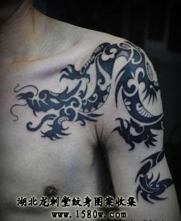 图腾过肩龙纹身图案_龙纹身图案大全_纹身图吧