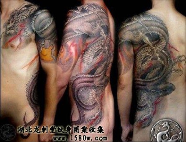 超霸气披肩龙纹身图案_龙纹身图案大全_纹身图吧