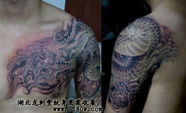 魁梧过肩龙纹身_龙纹身图案大全_纹身图吧