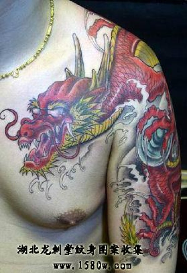 彩龙过肩龙纹身_龙纹身图案大全_纹身图吧