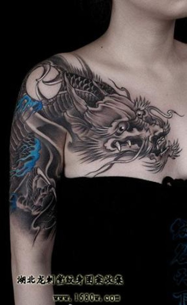 一款女性过肩龙纹身图案_龙纹身图案大全_纹身图吧