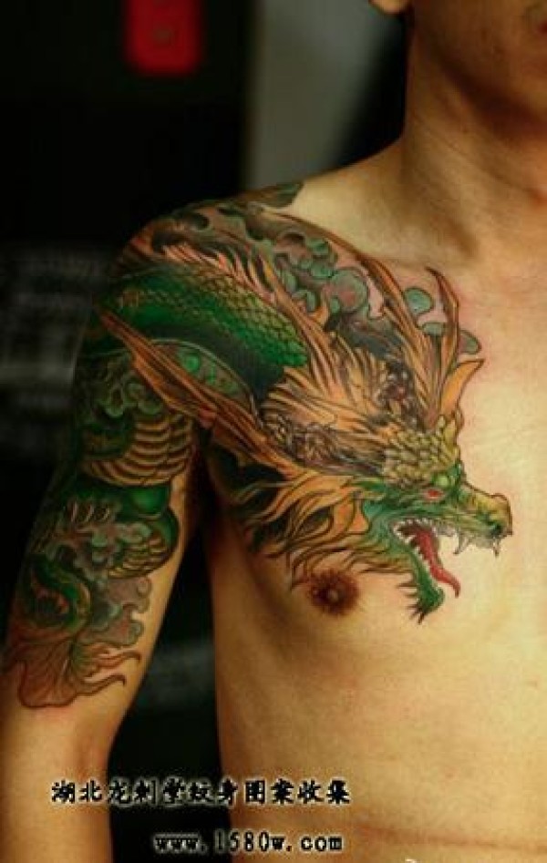 彩色过肩龙纹身_龙纹身图案大全_纹身图吧