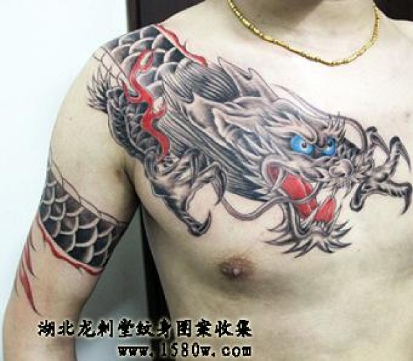 披肩龙纹身扛肩龙纹身_龙纹身图案大全_纹身图吧